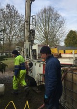 Comme la précédente PAC. La chaleur est prélevée dans le sol et restituée dans l’eau du circuit de chauffage. Le captage de la chaleur du sol, se fait exclusivement à l’aide de capteur verticaux dans lesquels circule un fluide intermédiaire ( eau +glycol). On parle de géothermie à « eau Glycolé ».